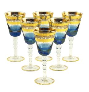 ADRIATICA Бокал для вина/воды 250мл, набор 6 шт, хрусталь голубой/декор золото 24К/платина