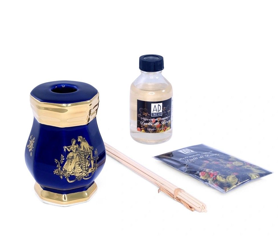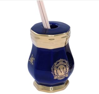 Стакан для ароматических палочек 8х8xH12 см, керамика, цвет синий, декор золото. Коллекция AMANTE BLU.