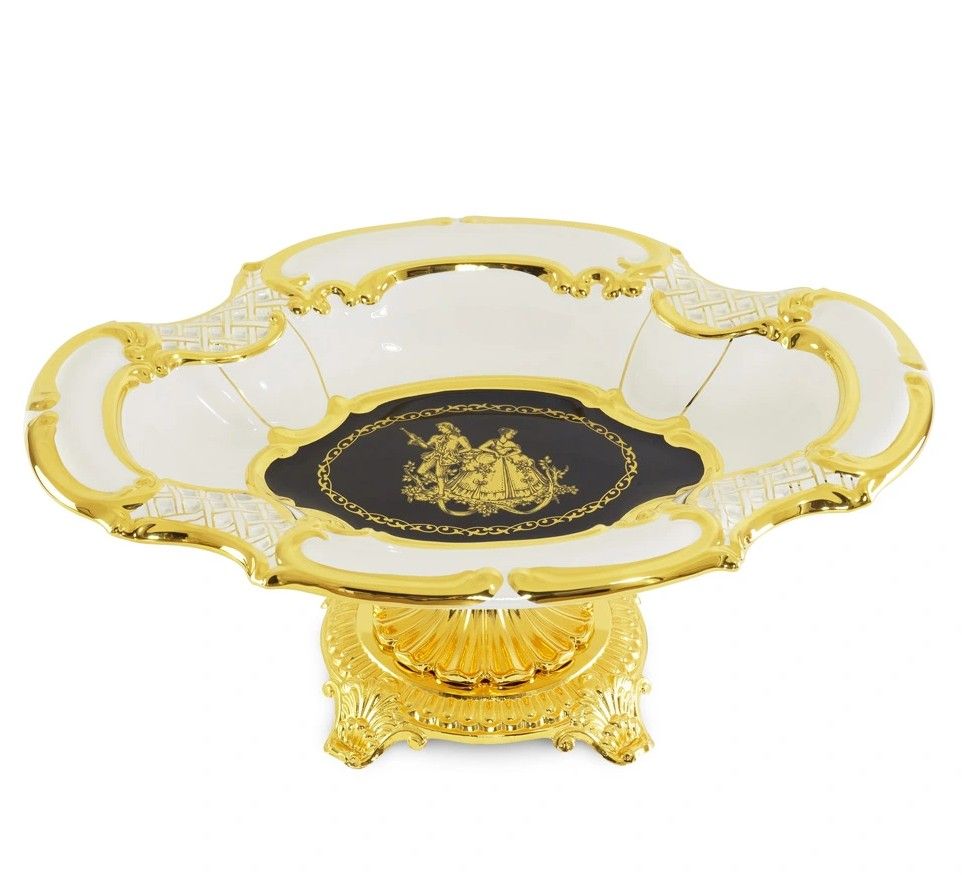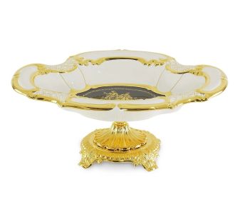 Ваза настольная 47x35xH19 см на основании, керамика.латунь, цвет белый.синий,декор золото. Коллекция AMANTE BNB.
